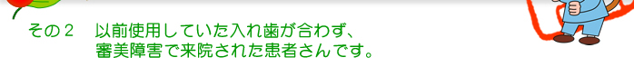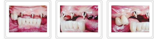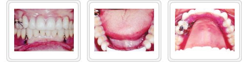 ■治療後(入れ歯装着) 上顎前歯は残存しているので噛んだ時の感覚も失われず、発音時の障害もなく、審美的にも満足のいく結果が得られました。 |